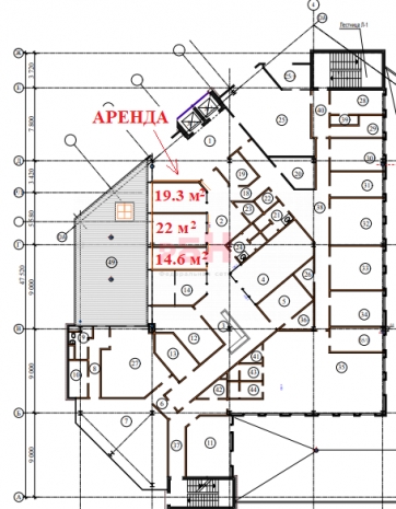 Отличный офис для серьезной компании. Состоит из 3 кабинетов: 19.3 м2, 22 м2 и 14.6 м2.