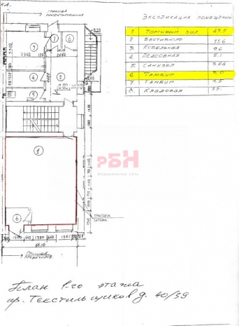 Предлагается в аренду помещение свободного назначения общей площадью 51,6 кв. м. (на схеме пом. №№ 1,4 и 6).