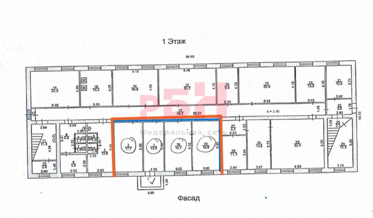 - Сейчас помещение поделено на офисы, соединены между собой: 16, 17, 13, 16 кв.м
