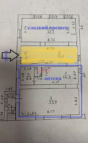 Сдаваемая половина находится прямо напротив входа (ранее был магазин цветов).